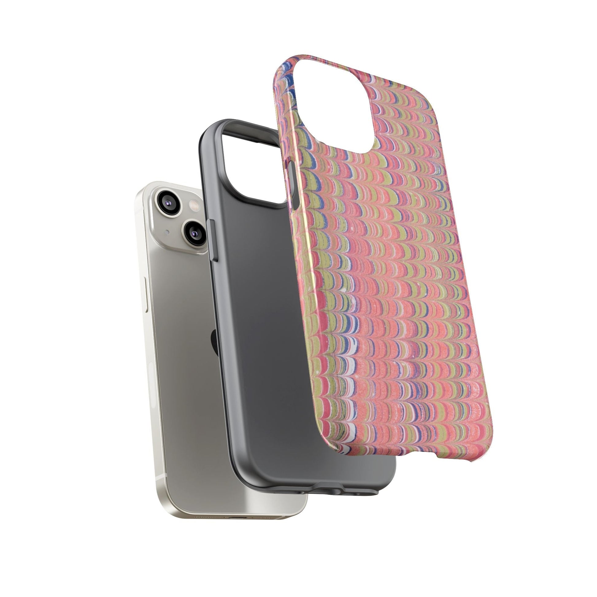 Elegant Vintage Italian Florence Feather Marbled Phone Case – Pink Pastels | Tough Dual-Layer | iPhone 16, Samsung Galaxy, Google Pixel | Glossy or Matte
